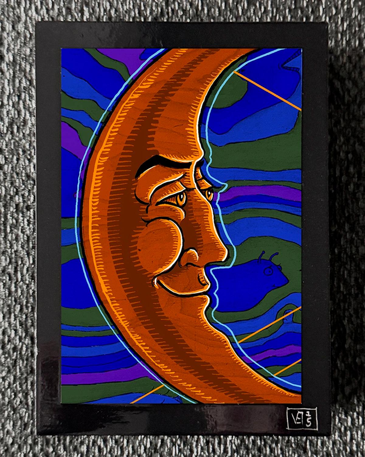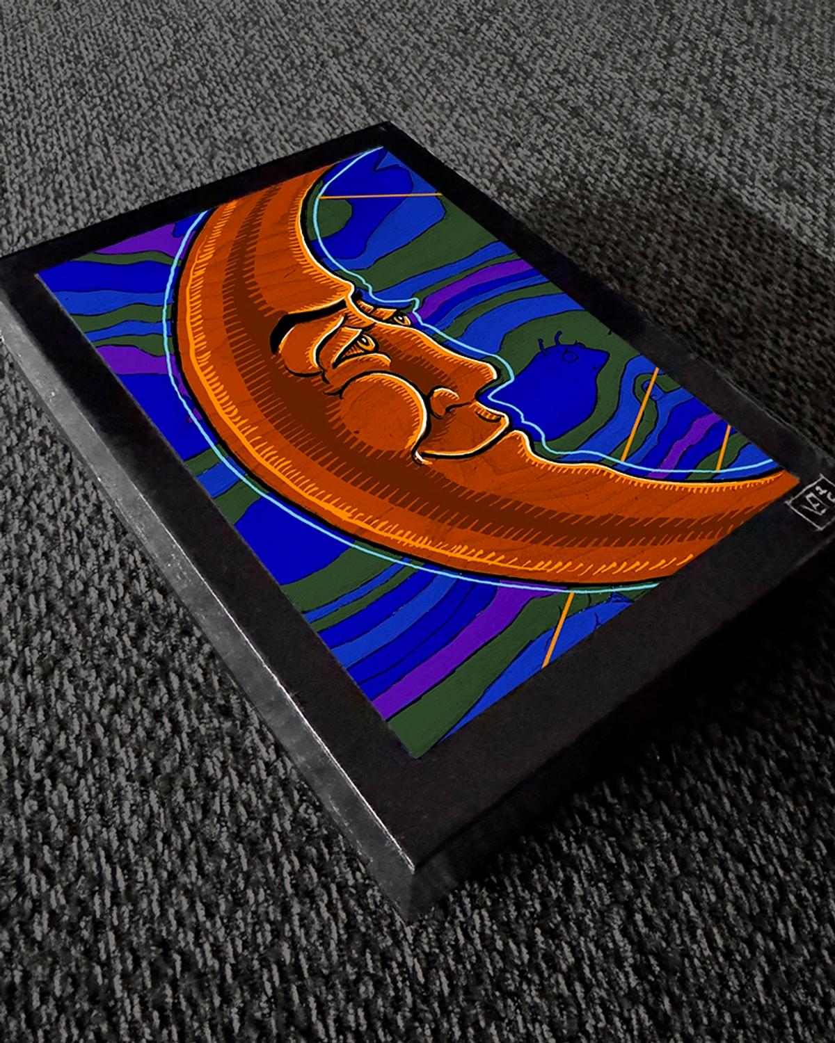 The Penrose triangle is an impossible object that represents a paradox, an illusion of reality. The triangle is a sacred shape, Representing the trinity - the past, the present, and the future. The anthropomorphism of the moon is a metaphor for humanity observing time as three separate and distinct things - the past, the present, and the future. This is the illusion. The reality is we live only and forever in this very moment. There is no past, there is no future. There is only the forever now. Do not let a painful past, or a presumed future, dictate your experience in the Forever Now. Suffering is not a given, it is a choice.